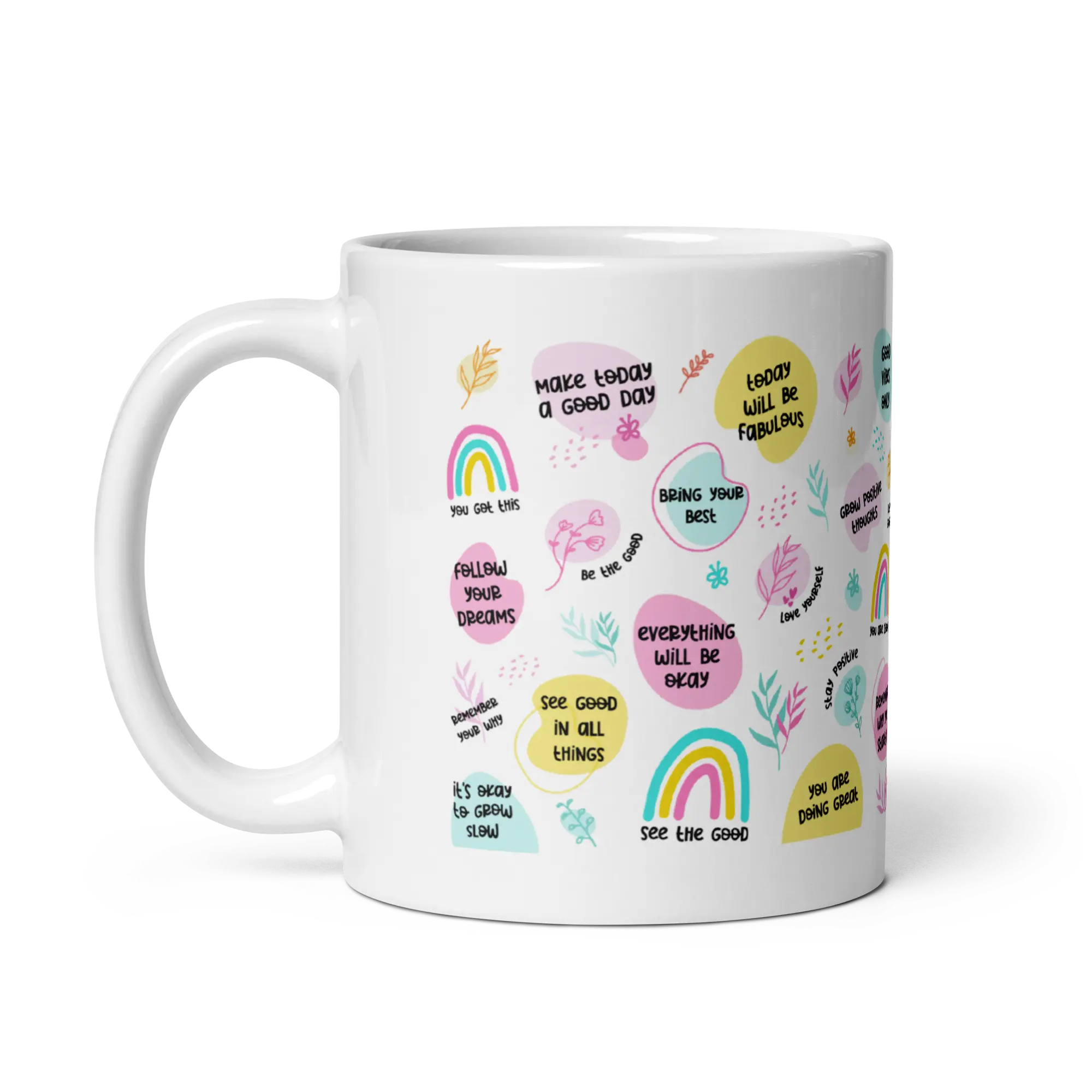Ξεκινήστε τη μέρα σας με έμπνευση! Λευκή γυαλιστερή κεραμική κούπα με εμψυχωτικά quotes που θα σας δώσουν θετική ενέργεια σε κάθε γουλιά. Ιδανική για καφέ, τσάι ή οποιοδήποτε ζεστό ρόφημα και τέλειο δώρο για φίλους και αγαπημένους.